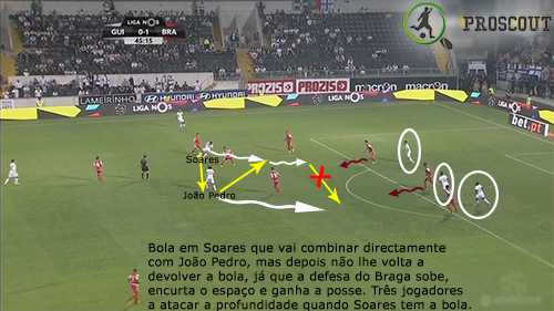 Com a vinda de Bernard, a equipa vimaranense vai ganhar duas coisas que tanto faltaram neste jogo: criatividade e forte reacção à perda da bola. Será um jogador que tentará fazer esquecer Otávio, embora com um perfil um pouco diferente. Soares, jogador em foco neste jogo pela grande penalidade falhada, é um avançado com uma qualidade bem acima da média do nosso campeonato, e que creio que irá corresponder durante a época aquilo que os adeptos esperam dele. Nota ainda para João Pedro, jogador que neste jogo demonstrou enorme qualidade, com um perfil de médio centro extremamente interessante e que a continuar com esta bitola, vai ser certamente uma das revelações desta Liga. Depois de várias épocas na equipa B e onde pouco jogou na equipa A, parece que o treinador acredita nele. E pelo que se viu no dérbi, tem certamente razões para o fazer.