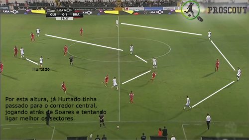 A dupla de médios centro (Rafael Miranda e João Pedro), mostrou-se muito capaz, mas defensivamente tiveram dificuldades, já que o espaço que precisavam de fechar era muito e não o conseguiam fazer sempre de forma eficaz. A equipa esteve muitas vezes com 4 jogadores da frente completamente colados à linha defensiva adversária, o que tornava muitas vezes impossível ligar os sectores, sem ser com o passe longo, procurando a profundidade, que era o movimento mais usado. Para combater a falta de ligação entre os sectores, Pedro Martins mexeu muitas vezes no posicionamento de Marega, Ricardo Valente e Hurtado, sendo que com Hurtado nas costas de Soares começou a existir melhor ligação, já que o jogador peruano baixava mais para fazer movimentos de apoio e não estava sempre colado à linha defensiva contrária.