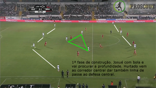 Já mostram um bom entendimento no que devem fazer os 4 defesas, mas ainda precisam de melhorar a forma como controlam a profundidade e perceber os estímulos para subir o bloco defensivo. Há boa ligação entre os defesas e os médios centro na 1ª fase de construção, e mesmo que os centrais não coloquem a bola nos apoios, as linhas de passe estão lá. Os laterais tentam ajudar muito em tarefas ofensivas, mas é preciso perceber que espaços ocupar, já que muitas vezes estão na mesma linha que os extremos, não existindo complementaridade, ou estavam demasiado longe da bola, assim como os extremos, faltando depois forma da bola lá chegar.