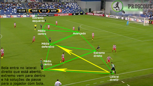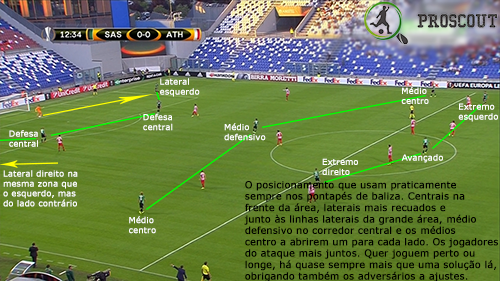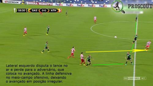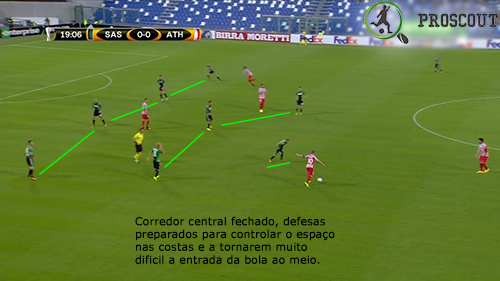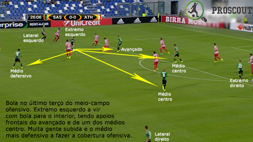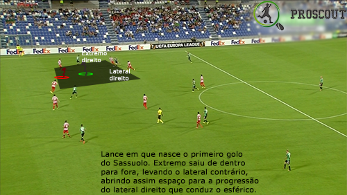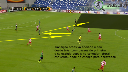 O corredor privilegiado para atacar neste jogo foi o direito, muito também devido ao volume ofensivo que Pol Lirola dava a partir da posição de lateral com subidas constantes. Na frente de ataque, Defrel desgastou sempre muito a defesa contrária, tentando aproveitar cada deslize que eles cometessem, não parando um segundo. Os extremos procuram muitas vezes terrenos interiores, tentando desequilibrar com bola e sem bola, mostrando bons pormenores. Quando estão mais subidos, é o capitão Magnanelli (médio defensivo) que equilibra a equipa.