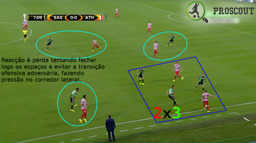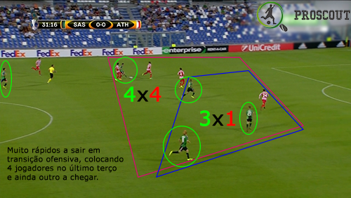 São muito perigosos em transição ofensiva, desdobram-se muito bem com vários jogadores, mesmo começando a transição em zonas recuadas várias vezes, com tudo praticamente ao primeiro toque. Os movimentos de saída estão muito bem trabalhados e são conseguidos com muita qualidade. Também conseguem reagir forte à perda da bola, mas a tendência é maior para recuperarem rapidamente a posição e não estarem expostos.